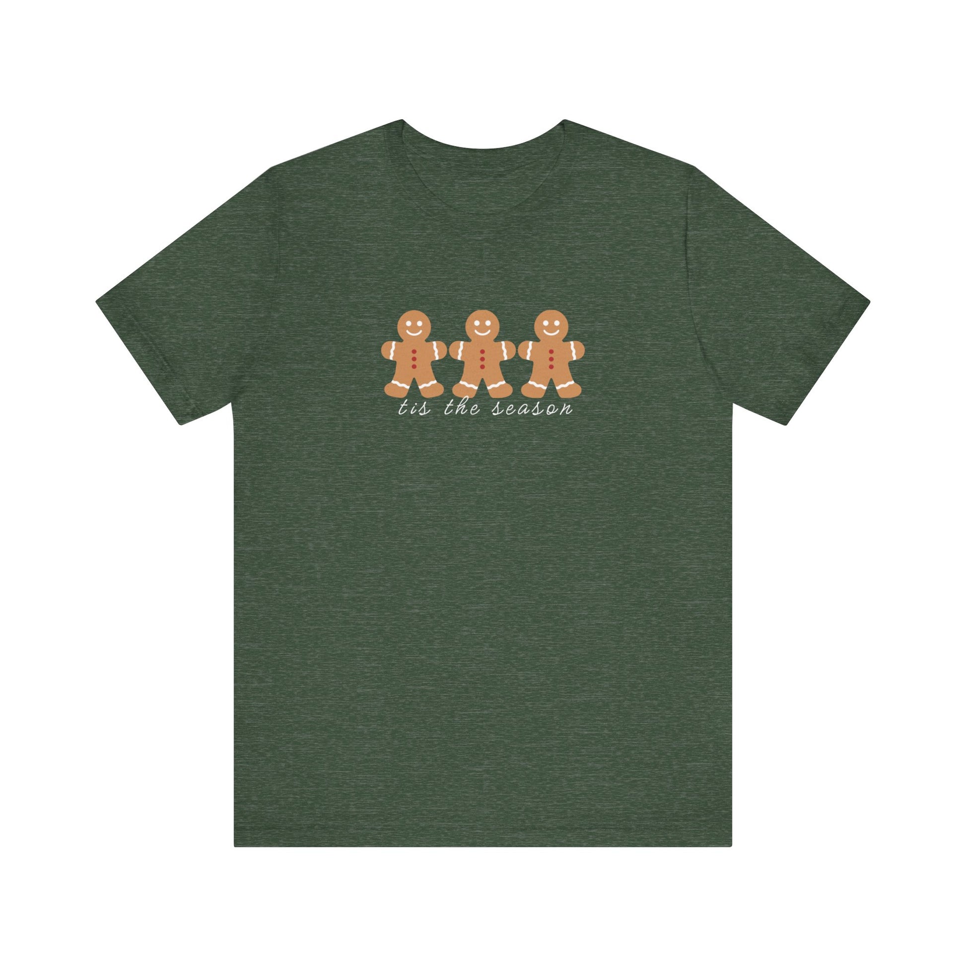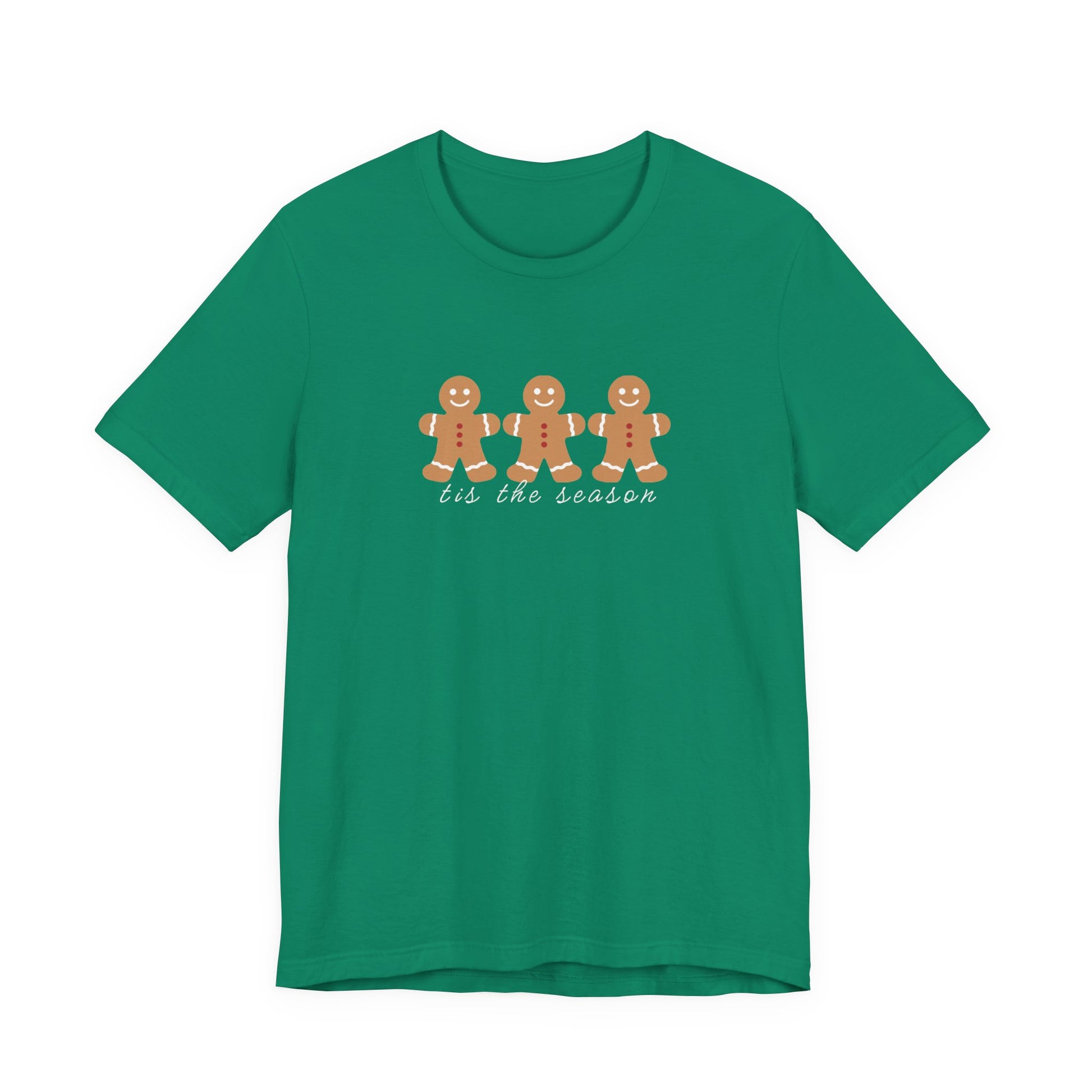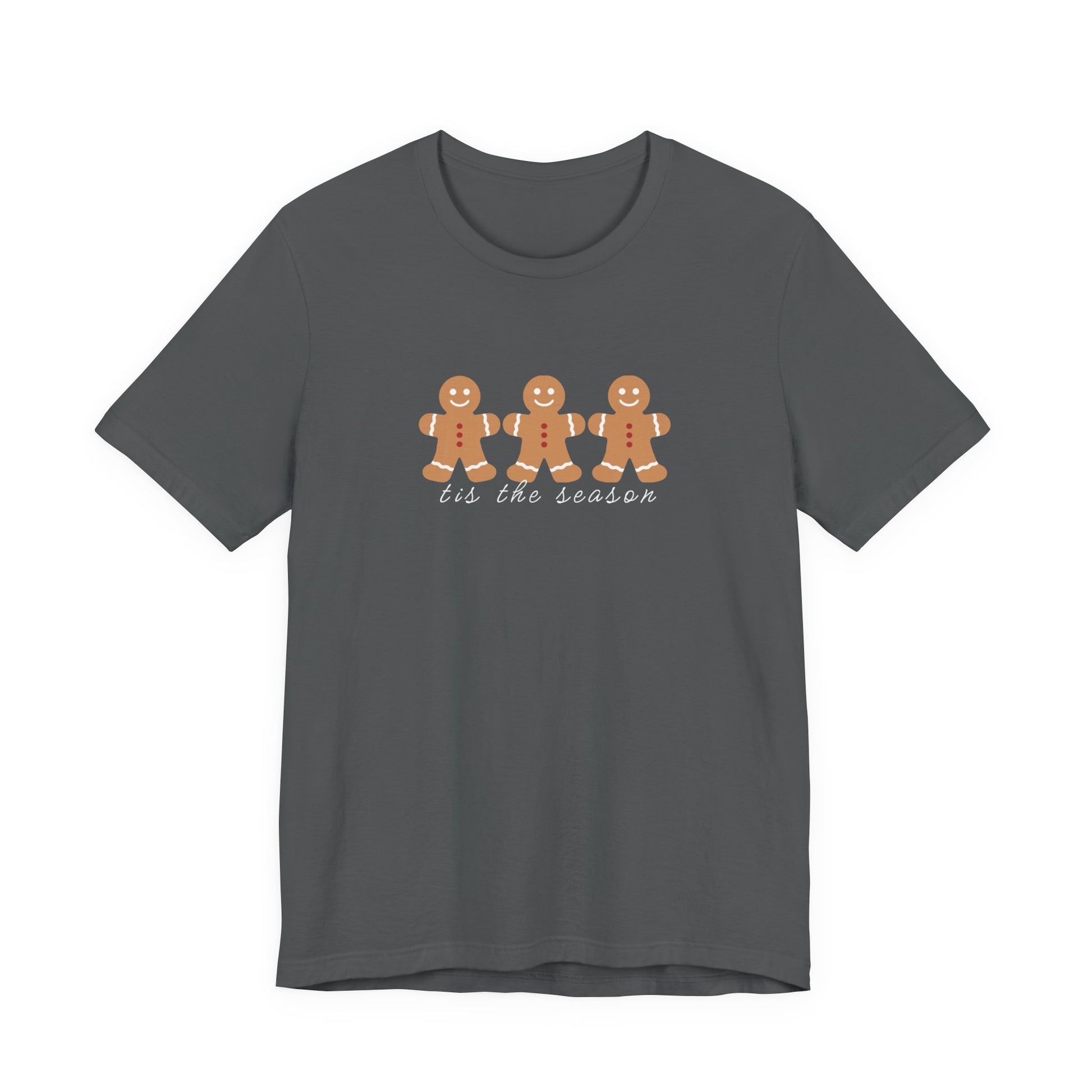 Warm, playful, and quietly festive — this lightweight crew tee brings cozy holiday vibes without shouting. Three smiling gingerbread figures march across the chest, their simple icing details rendered in soft, earthy tones that sit beautifully on the deep chocolate fabric. The shirt feels like slipping into a holiday memory: kitchen warmth, fresh-baked aromas, and low-key gatherings with people you love. Wear it layered under a cardigan for a casual family dinner, or solo with jeans while strolling a twinkling street market. The retail fit and neat crew neckline keep the look polished enough for relaxed holiday outings, while the breathable Airlume cotton makes it easy to move, hug, and taste-test cookies all evening.