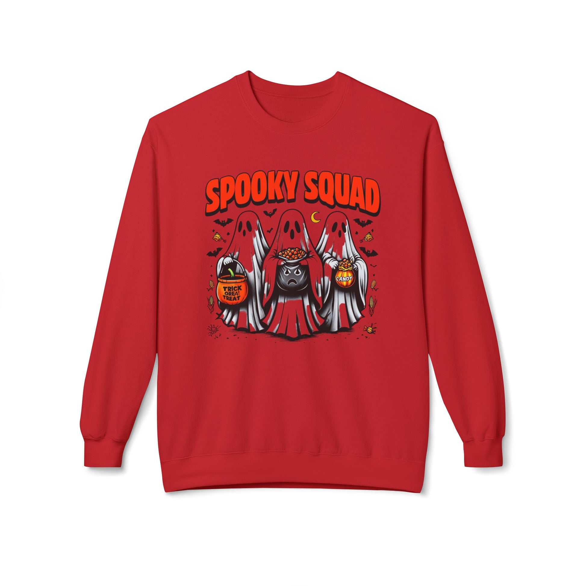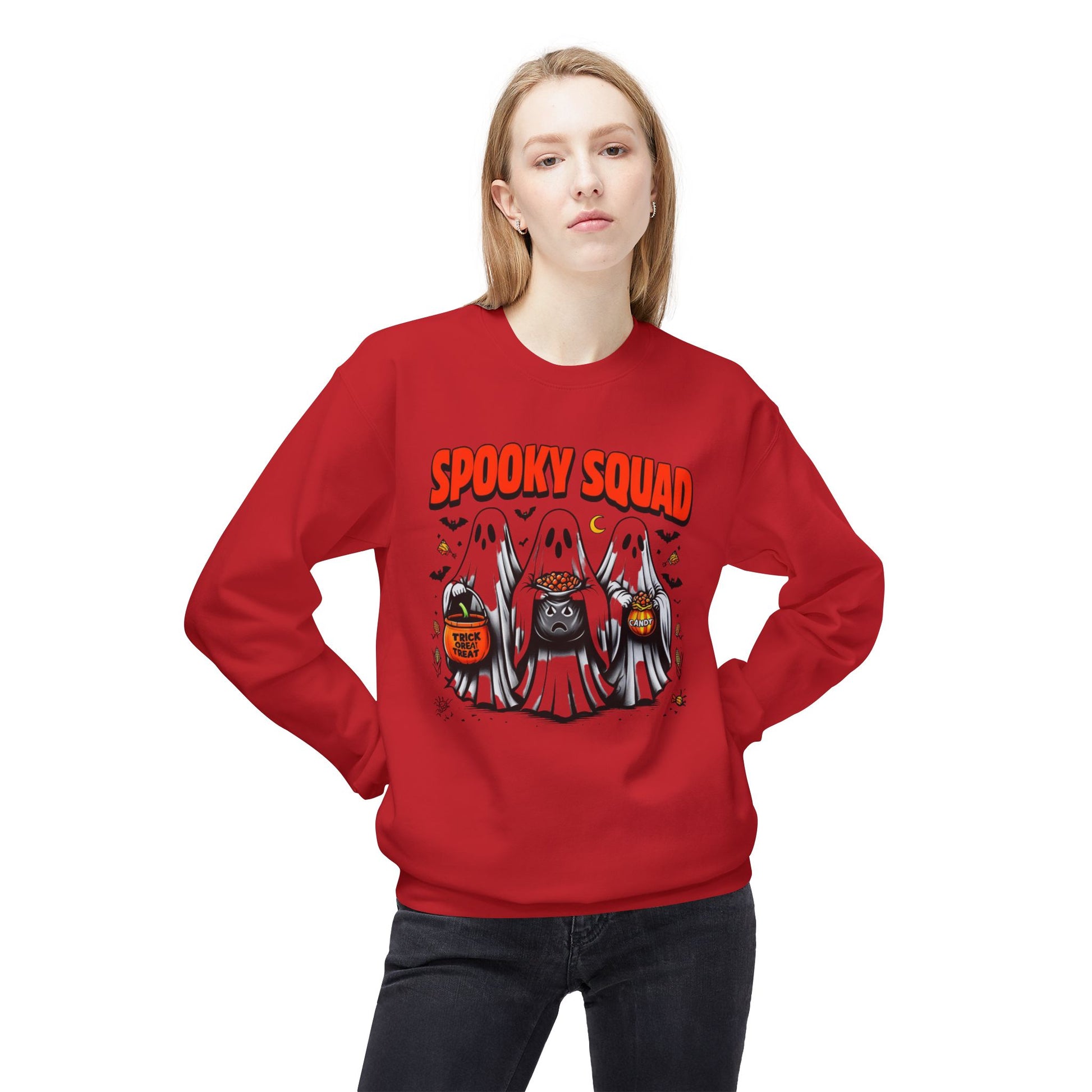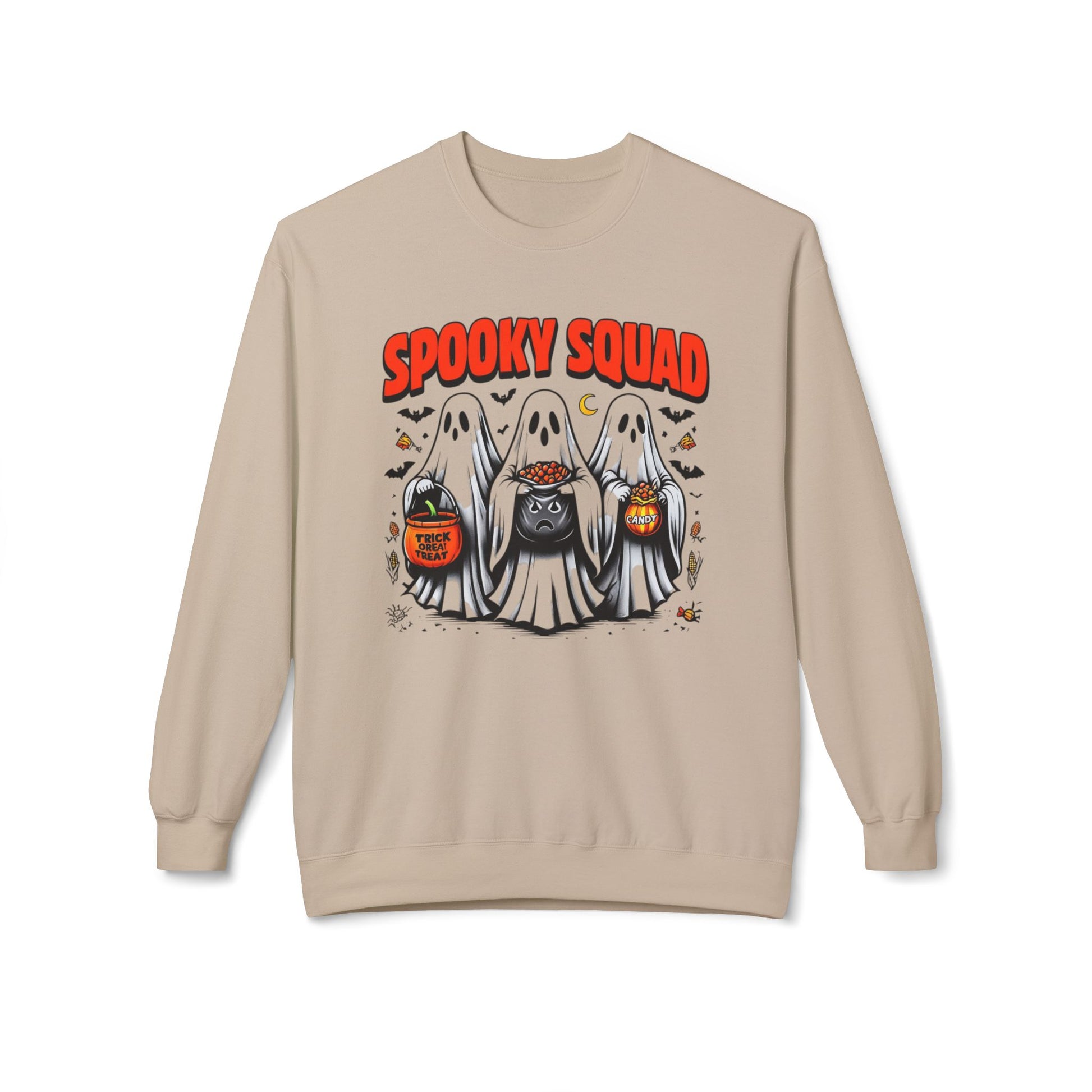 Spooky Squad Crewneck Sweatshirt, Halloween Sweatshirt, Unisex Fleece Top, Fall Apparel, Ghost Themed Clothing, Casual Halloween Wear